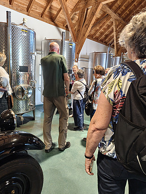 Unsere Tagesfahrt begann am Morgen mit einem Besuch in Born, wo wir die Cidre-Brauerei Ramborn besichtigten. Die Führung durch die Produktion war nicht nur informativ, sondern auch äußerst spannend – wir erhielten einen interessanten Einblick in die traditionelle Herstellung von englischen Cidre. Natürlich durfte im Anschluss auch eine kleine Verkostung nicht fehlen, bei der wir die Vielfalt der Ramborn-Produkte selbst probieren konnten.