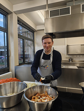 Der Vorstand der Europa-Union Saar hat in dieser Woche gemeinsam mit der Volkshochschule den Kochlöffel geschwungen – zugunsten von Ingos kleiner Kältehilfe. In gemeinsamer Runde wurde Grünkohl zubereitet, der anschließend an Menschen in schwierigen Lebenslagen ausgegeben wurde.