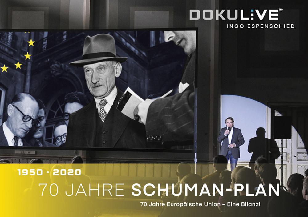 Die aktuelle DOKULIVE-Sonderedition „70 Jahre Schuman-Plan“ greift die Europäische Einigung nach 1945 auf und spannt den thematischen Bogen von der Schuman-Erklärung bis heute. Die Veranstaltung soll als saarländischer Beitrag zur deutschen Ratspräsidentschaft in der EU (im 2. Halbjahr 2020) wichtige Stationen der europäischen Integration thematisieren.