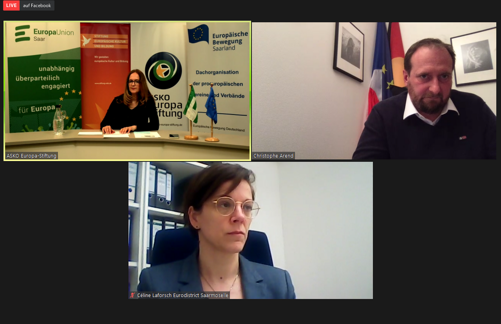 Auch Gilbert Schuh, Präsident des Eurodistricts SaarMoselle und Bürgermeister der Gemeinde Morsbach, hätte an der Diskussion teilnehmen sollen. Doch kamen ihm die tagesaktuellen Entwicklungen in der Corona-Krise dazwischen. Die französische Regierung hatte noch am Morgen desselben Tages angekündigt, dass sie ab Anfang März ihre Einreisebestimmungen verschärft. Die Vorbereitungen zur Einrichtung eines deutsch-französischen Corona-Testzentrums für Grenzpendler durch den Eurodistrict SaarMoselle am Grenzübergang Goldene Bremm laufen seither auf Hochtouren.