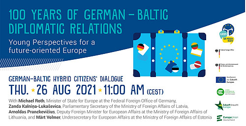 Erster Bürgerdialog nach der Sommerpause! Seid am 26. August um 11 Uhr im Livestream dabei, wenn junge Menschen aus Deutschland und dem Baltikum sich mit unseren Gästen über die Zukunft Europas und die deutsch-baltischen Beziehungen austauschen.